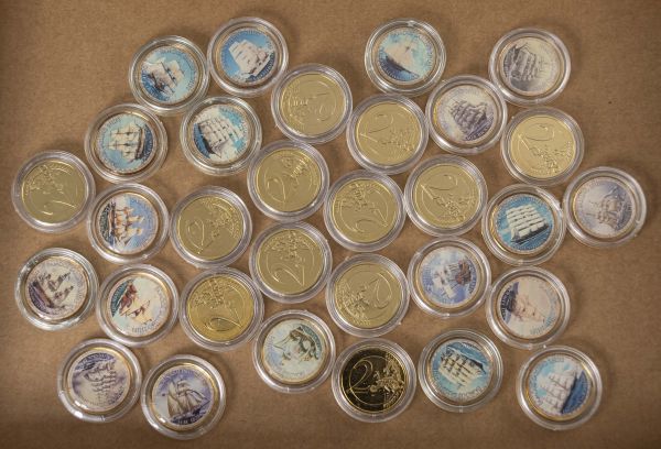 Euroländer Allgemein Berühmte Segelschiffe - Famous Sailing Ships, 2 Euro Nominale, emailliert und vergoldet, insgesamt 31 Stück in teils lädierten Kapseln