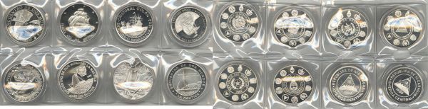 Alle Welt Commonwealth-Schiffsmotive in Silber, die Stärke der Royal Navy als Basis für den Expansionisdrang Britanniens spiegelt dieser umfangreiche Posten von über 100 Silberstücken wider, insgesamt mehr als 2 kg Silber stecken in diesem geschichtsträchtigen numisnautischen Konvolut, unterschiedliche Erhaltungen, siehe Fotos im Internet