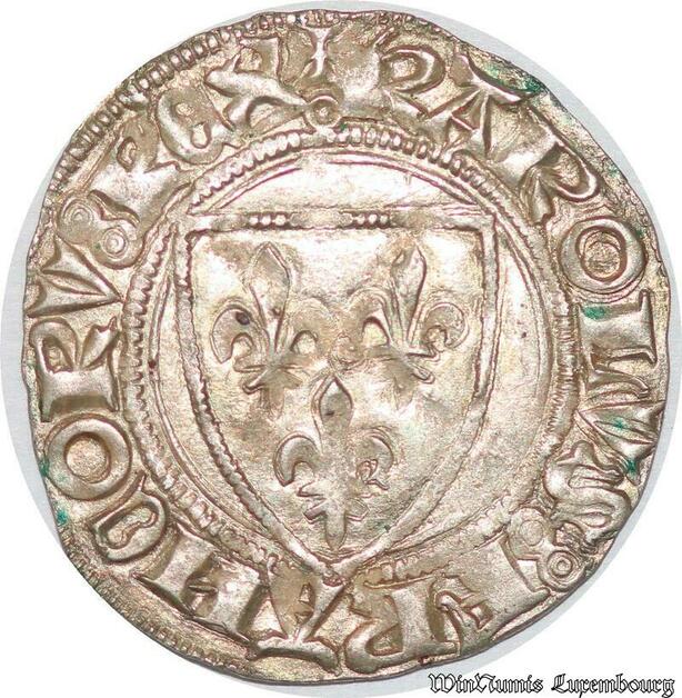 S6858 Rare Charles VI Bien-Aimé Fol Blanc Paris mint 4th emission AU Silver