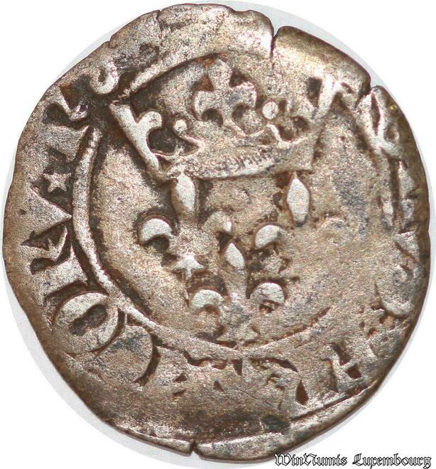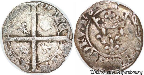 S6883 Rare Charles VII petit blanc aux trois lis 1re émission Saint-Pourcain