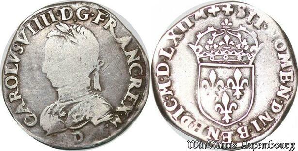 S6947 Rare Charles IX, teston 6e type, 1562 D Lyon Argent Silver ->Faire Offre