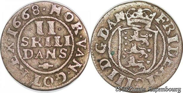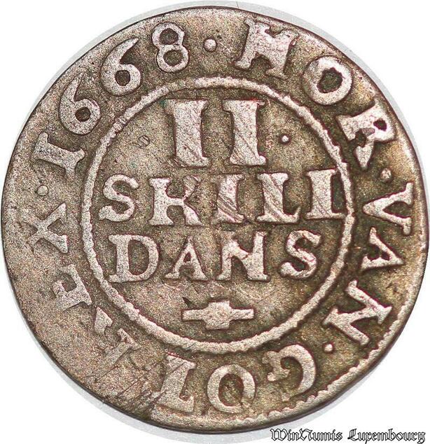 S6970 Danemark 2 Skilling Frederick III 1668 Silver ->Make offer