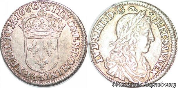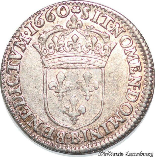 S6989 1/12 Ecu Louis XIV au buste juvénile1660 B Rouen Argent Silver SUP
