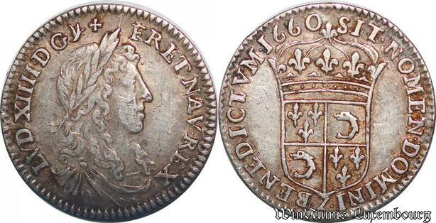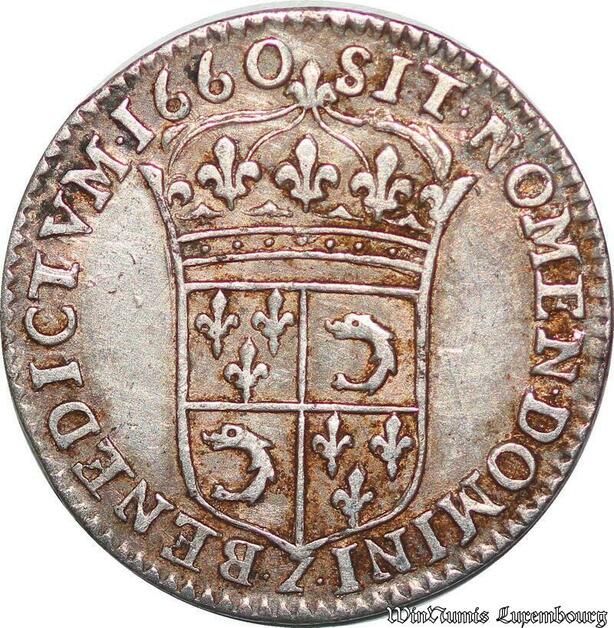 S6996 Rare 1/12 Douzième Ecu buste Louis XIV Dauphiné 1660 Z Grenoble Argent