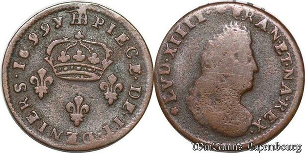 S7006 Louis XIV the sin king II Deniers légende latine 1696 BB Strasbourg