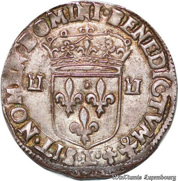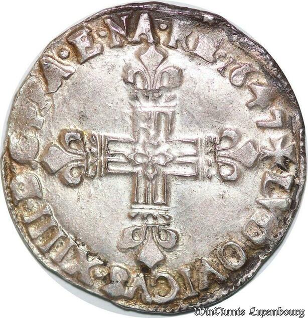 S7038 Rare France 1/4 Ecu croix fleurdelisée Louis XIV 1647 L Bayonne Silver AU
