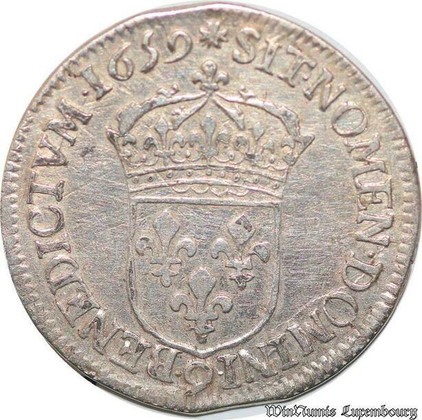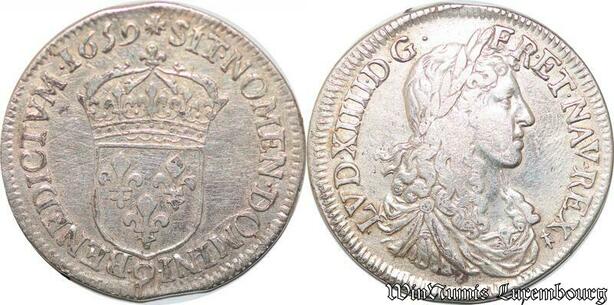 S7039 Rare 1/2 Ecu Louis XIV 1659 9 Rennes Argent Silver ->Faire Offre