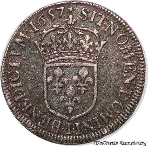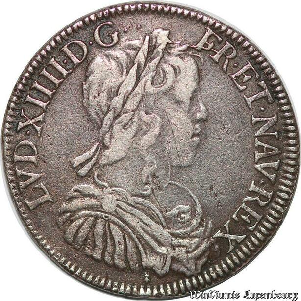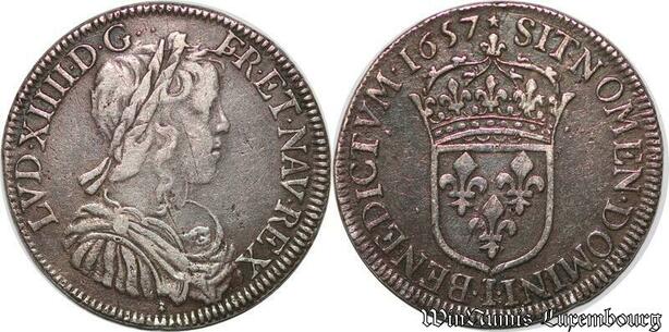 S7043 Rare 1/2 Ecu Louis XIV à la mèche longue 1657 I Limoges Argent Silver