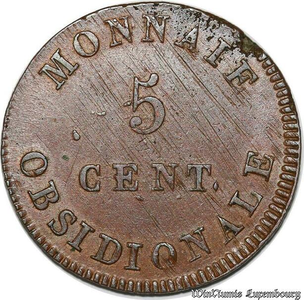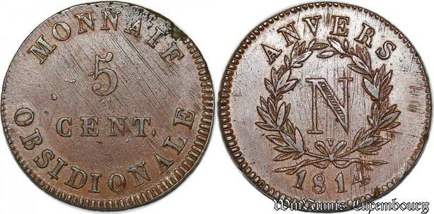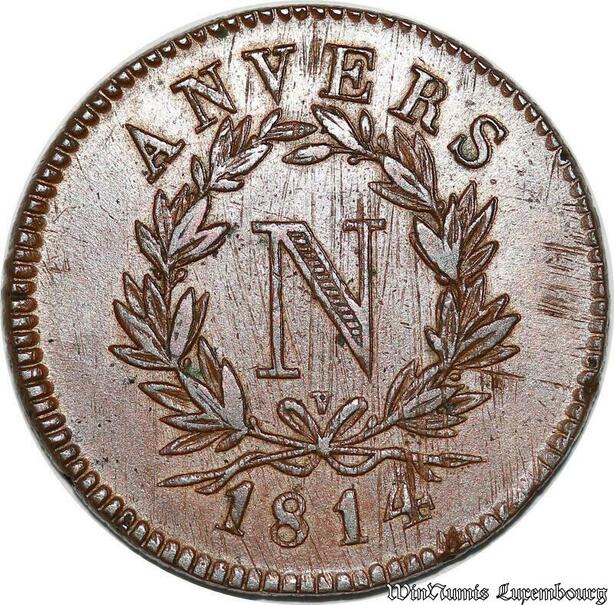 S7079 Rare 5 Centimes Napoléon Ier 1814 Siège Anvers Lettre V SUP -> Faire offre