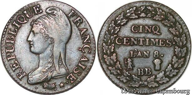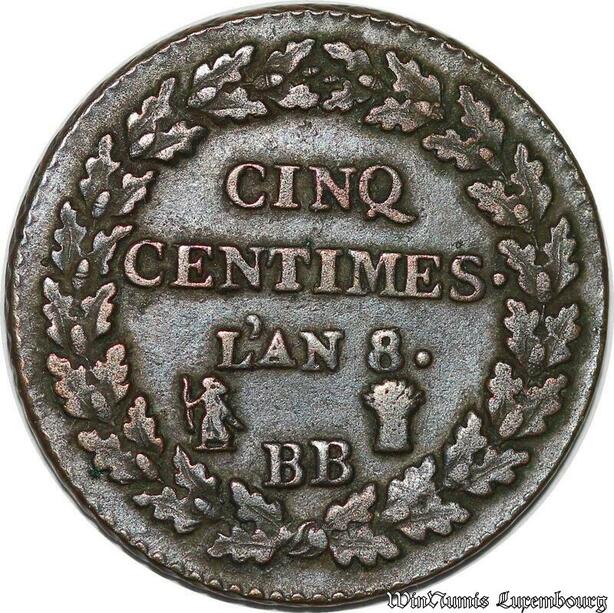 S7080 Rare 5 Centimes Dupré an 8/6 BB Strasbourg ->Faire Offre
