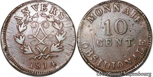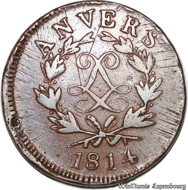 S7082 Rare 10 Centimes Anvers Double L Frappe De L'AtelI De Wolschot 1814