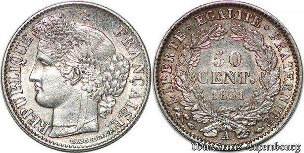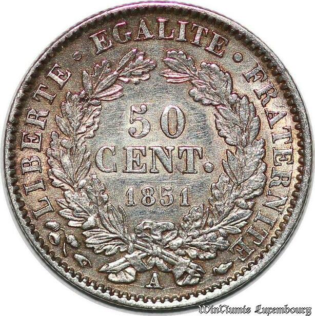 S7101 50 Centimes Ceres 1851 A Paris Argent Silver SUP