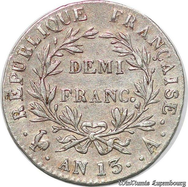S7122 Rare 1/2 demi Franc Napoléon Empereur An 13 A Paris TTB++ / SUP Silber