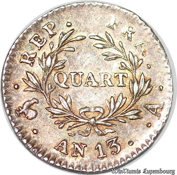 S7126 Rare 1/4 Franc Napoléon I An 13 A Paris Splendide Silber ->Angebot M