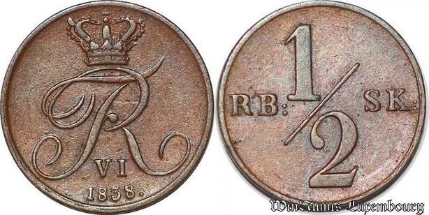 S7145 Denmark Danemark 1/2 Ringsbankskilling 1838 Frederik Vi ->Make Offer