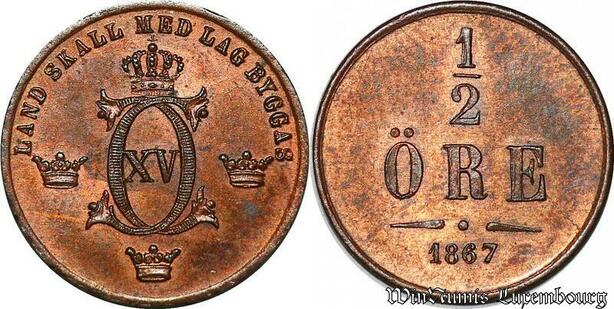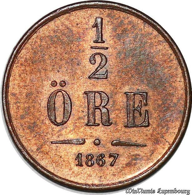 S7151 Rare ! Sweden Suede Carl XV Adolf 1/2 Ore 1867 UNC ! GEM ->Make offer