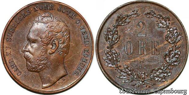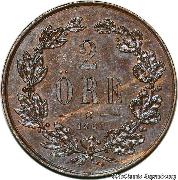 S7154 Sweden Suède Karl XV Carl XV 2 Ore 1861 Uncirculated ->Make offer