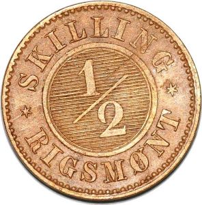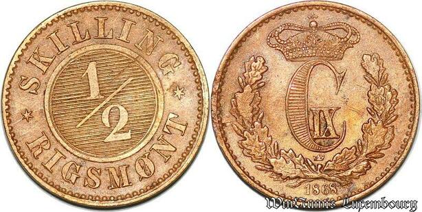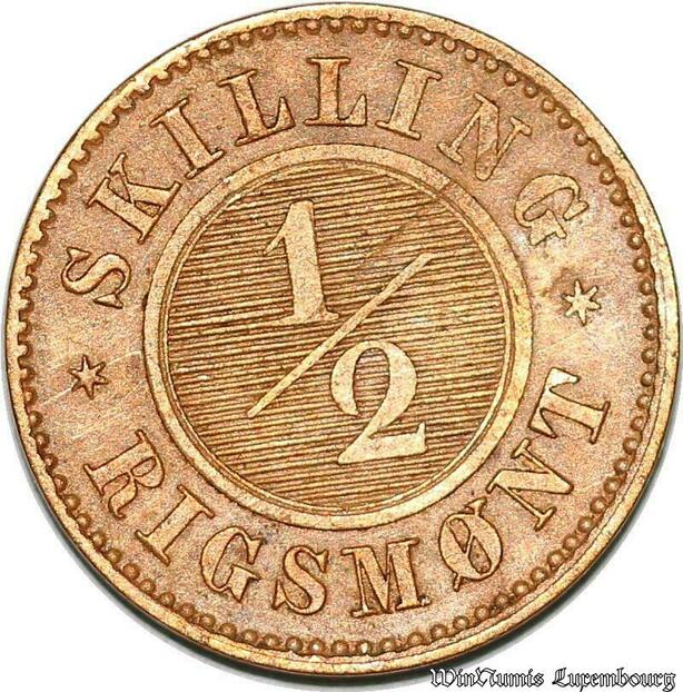 S7161 Denmark 1/2 Skilling Rigsmont 1868 AU ->Make offer