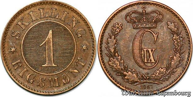 S7163 Denmark 1 Skilling Rigsmont 1867 Christian IX 1867 UNC ! ->Make offer