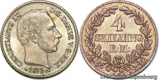 S7167 Denmark 4 skilling Rigsmont Christian IX 1873 CS Silver Uncirculated