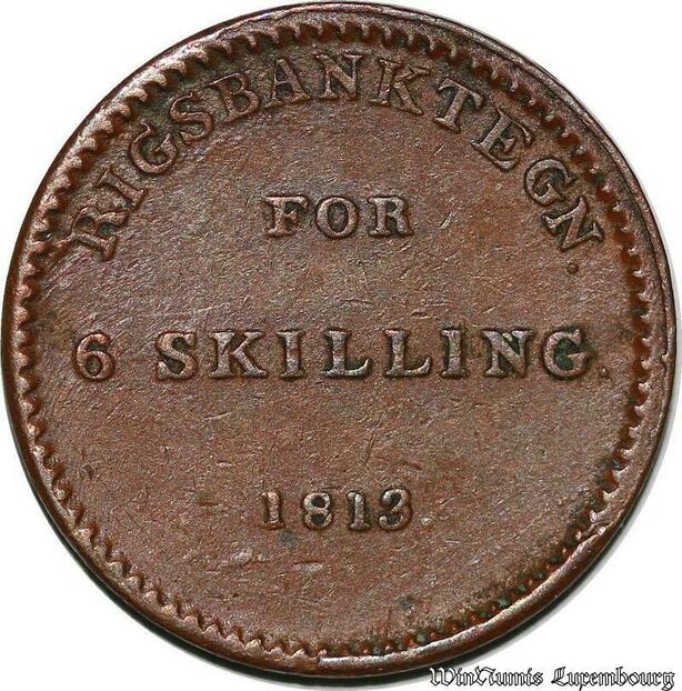 S7173 Rare Danemark 6 Skilling 1813 Frederik VI ->Make offer