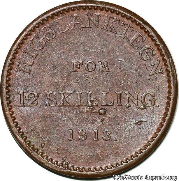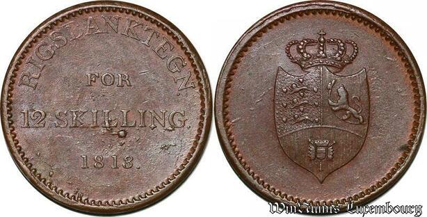 S7174 Danemark Frederik VI 1808-1839 12 Skilling Rigsbanktegn 1813 AU