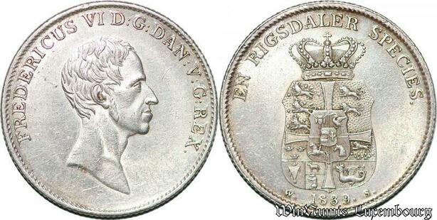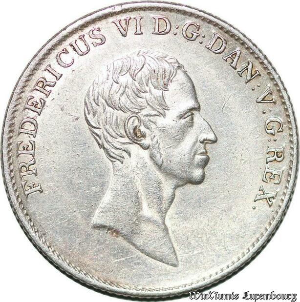 S7189 Denmark Friedrich VI 1808-1839 Rigsdaler 1829 FF Altona Silver AU !