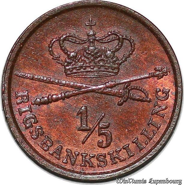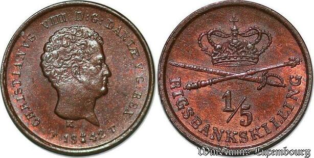 S7190 Denmark 1/5 Rigsbankskilling 1842 FF Dänemark Christian VIII UNC !