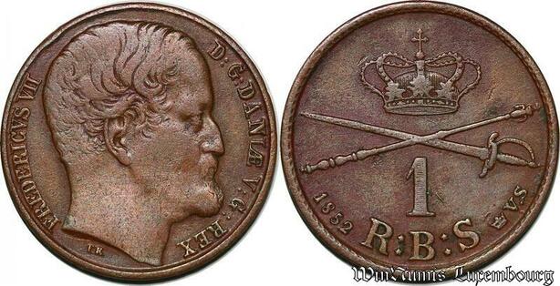 S7192 Denmark Rigsbankskilling 1852 Frederik VII Copper ->Make offer