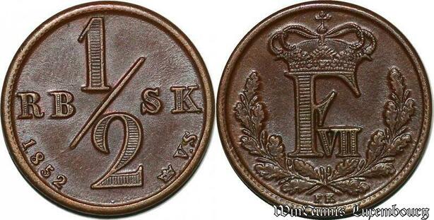 S7195 Denmark 1/2 Rigsbankskilling 1852 FK Frederik VII AU ! ->Make offer
