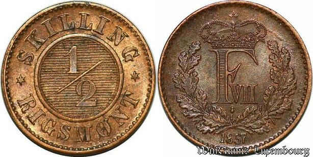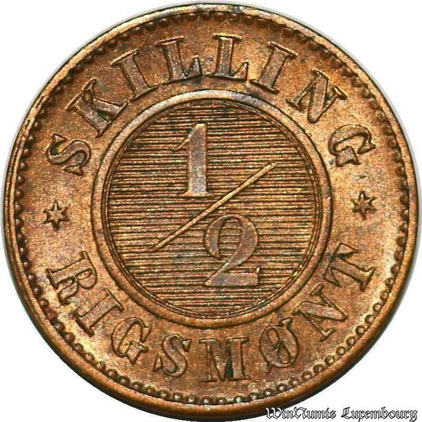 S7199 Danemark 1/2 Skilling Rigsmont 1857 Dänemark Frederik VII AU ! MS