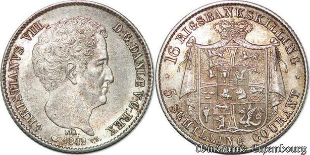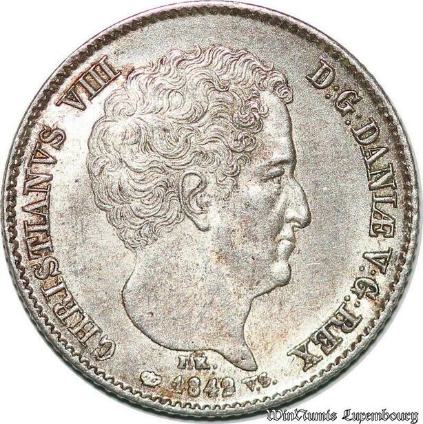 S7204 Danemark 5 Schilling 16 Rigsbankskilling 1842 Christian VIII SilverAUC