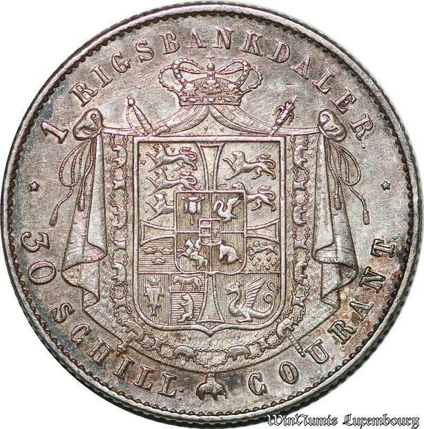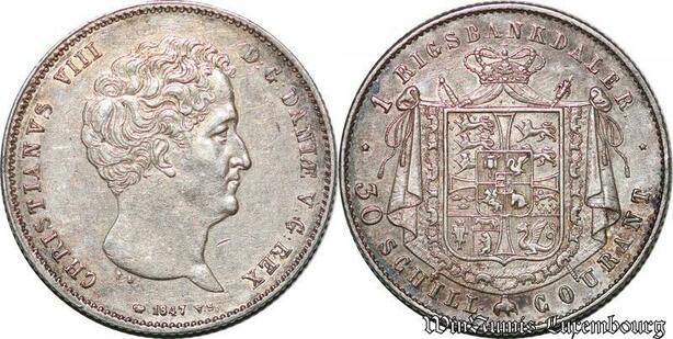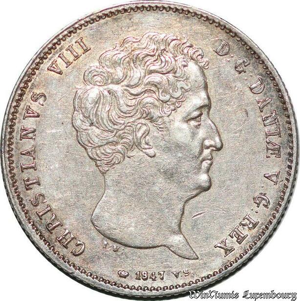 S7205 Rare Danemark Christian VIII Rigsbankdaler 30 Schilling 1847 Silver AU