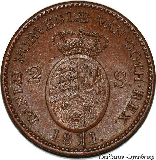 S7209 Denmark 2 Skilling Fredericus VI Frederik 1811 XF - AU ->Make offer