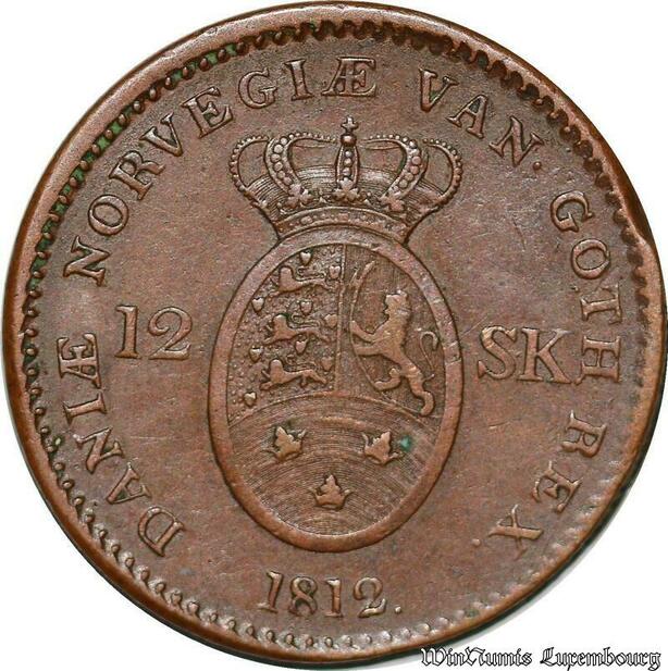 S7212 Rare Denmark Danemark 12 Skilling Frederik VI 1812 -> Make offer