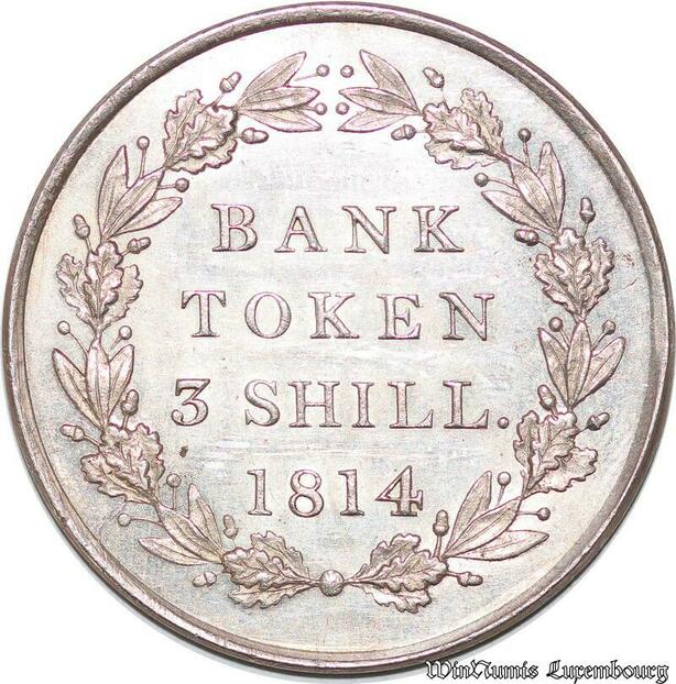 S7234 Great Britain GB One Shilling Sixpence Bank Token 1814 Silver UNC !