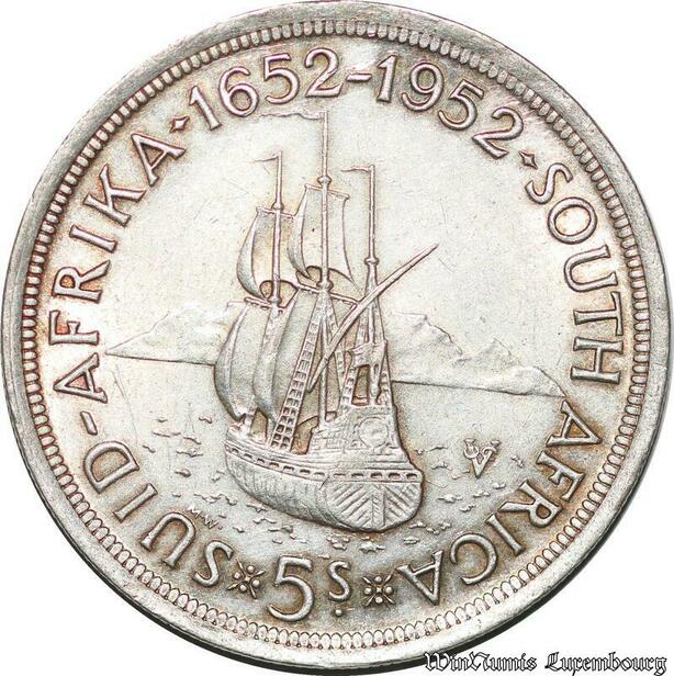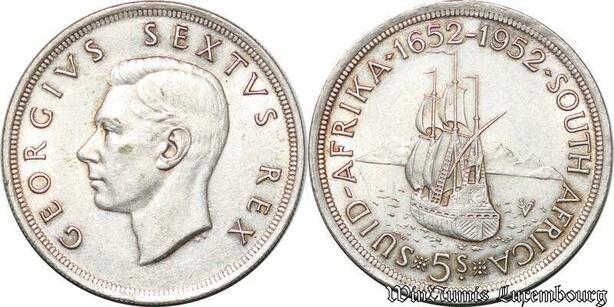 S7243 South Africa 5 Shillings 1952 Capetown Georgeius Sextus Rex Silver