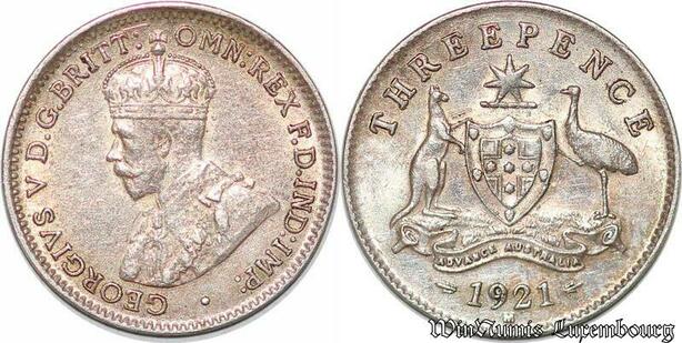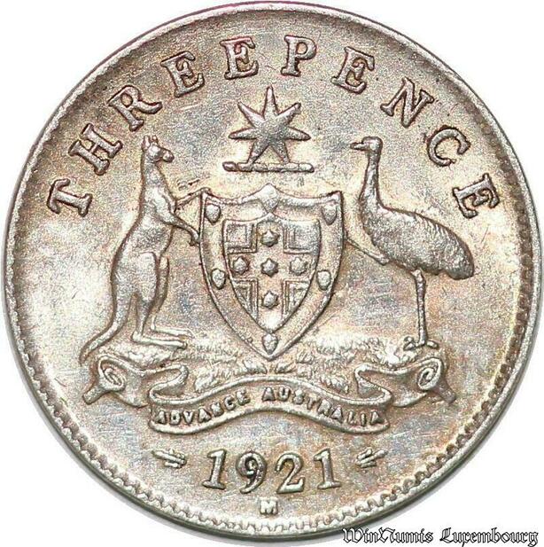 S7247 Australia 3 Pence 1921 M Melbourne AU UNC ! Silver ->Make offer