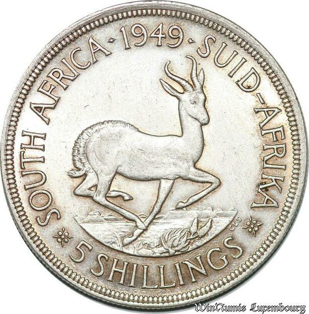 S7251 South Africa 5 Shillings 1949 Georgeivs Sextvs Rex Silver ->Make offer