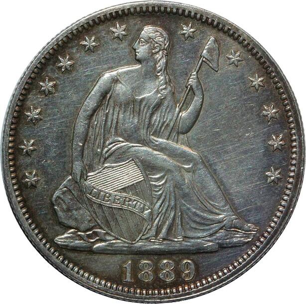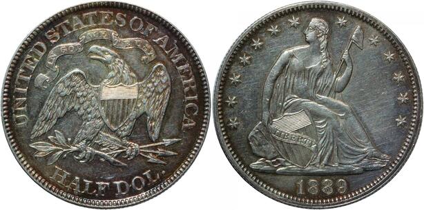 S7254 Scarce USA 50 Cents Half Dollar Liberty Seated 1889 Silver UNC ! Toning