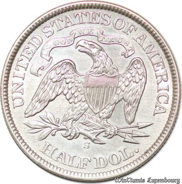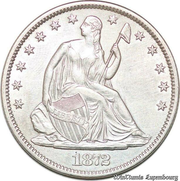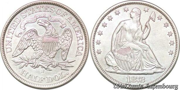 S7257 Scarce USA 50 Cents Half Dollar Liberty Seated 1872 S Silver AU !