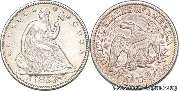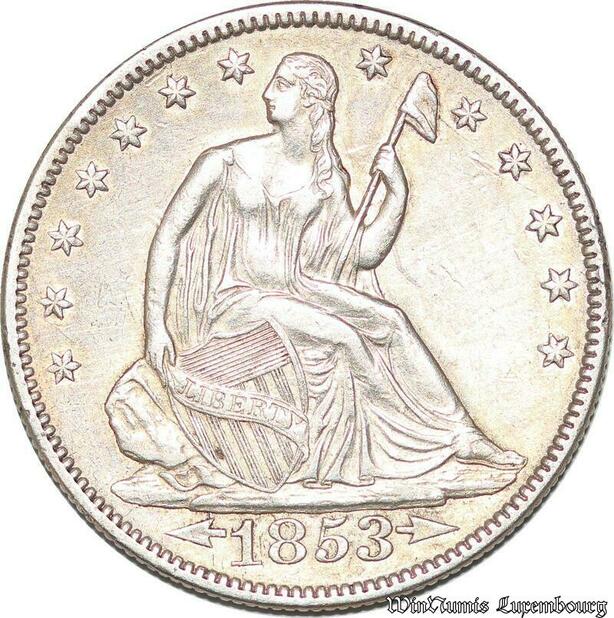 S7262 Scarce USA 50 Cents Half Dollar Liberty Seated 1853 Silver !->Make offer