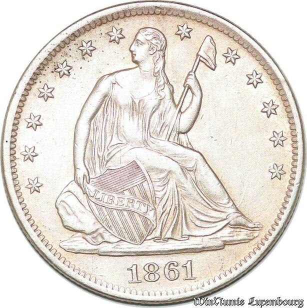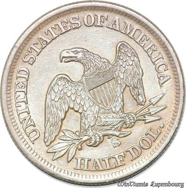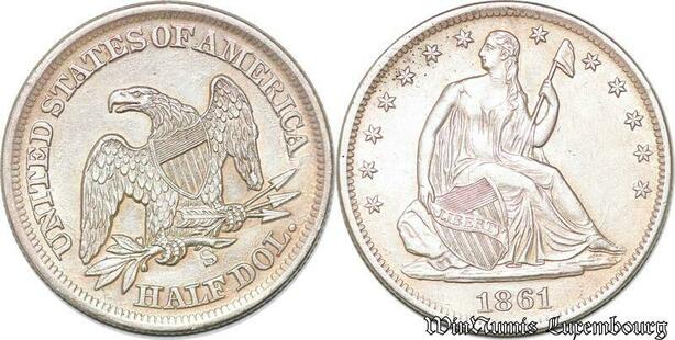 S7265 Scarce USA 50 Cents Half Dollar Liberty Seated 1861 S Silver ! AU