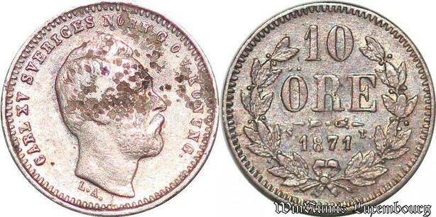 S7292 Schweden 10 Öre 1871 Carl XV Adolf ->Make offer
