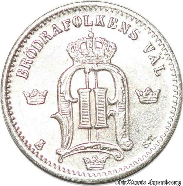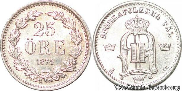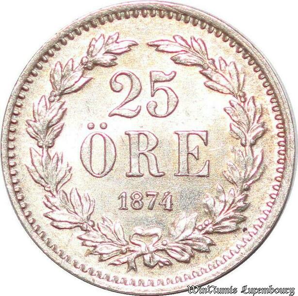 S7293 Sweden 25 Öre Oskar 1874 ST Silver AU UNC ->Make offer