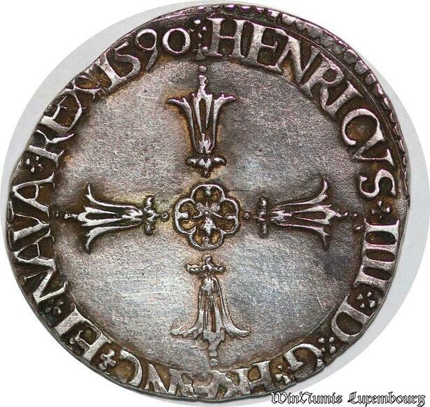 S7336 Rare ! Rare 1/4 Ecu Quart Henri IV 1590 H La Rochelle Argent Silver SUP