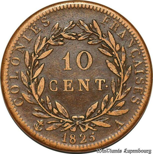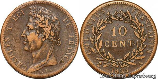 S7345 Rare Colonies Guyana 10 Centimes pour la Guyane et le Sénégal Charles X 1825