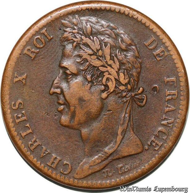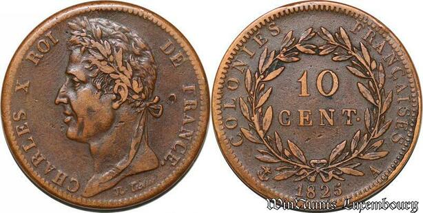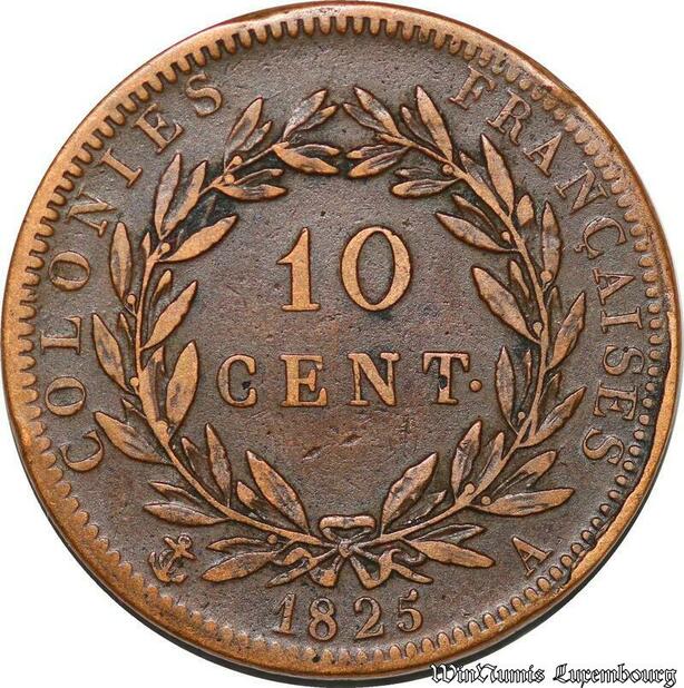 S7346 Rare Colonies Guyana 10 Centimes Guyane et le Sénégal Charles X 1825 AU