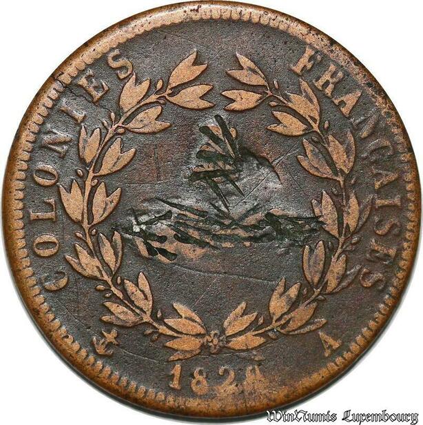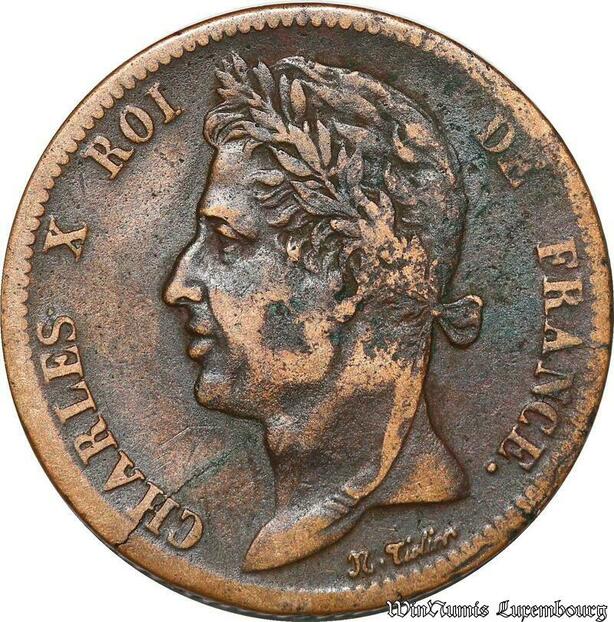 S7348 Guyane 5 Centimes Charles X pour les colonies 1828 Paris ->Faire Offre