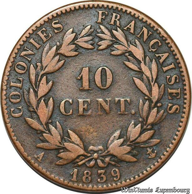 S7351 Guadeloupe 10 Centimes Louis-Philippe 1839 Paris